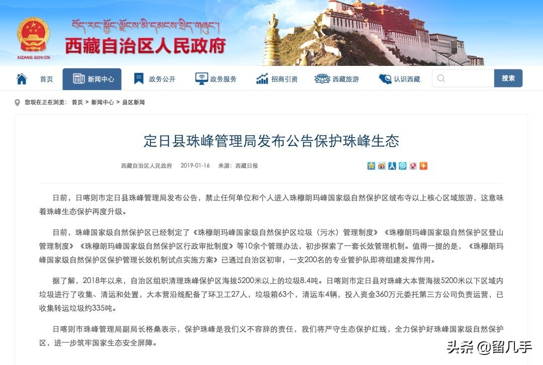 事出有因,西藏自治区日喀则市定日县珠峰管理局发布公告称:禁止任何单位与个人进入珠峰北坡绒布寺以上核心区域旅游。下图的公告中有“绒布寺以上核心区域”与“旅游”等字样,或许有朋友有疑问,这说的都是哪儿跟哪儿?