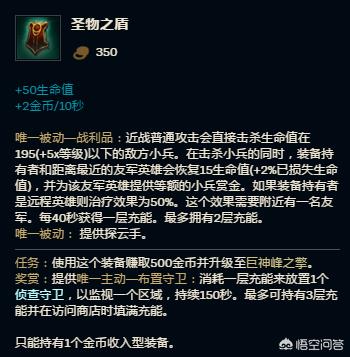 上单带工资装圣物之盾有必要吗?我觉得还是不错的,现在我玩任何路线,我都喜欢带工资装,目的是为了跳钱,其次是做眼。那么分析一下上单为什么会选择圣盾呢?