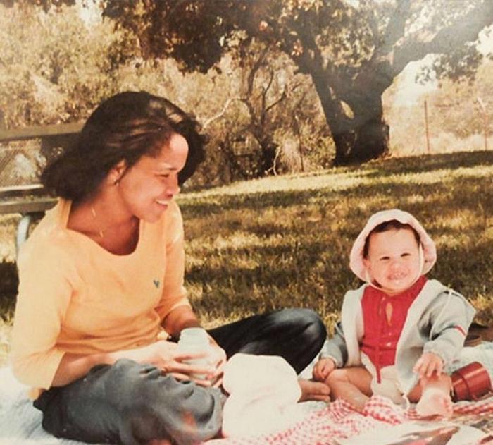 梅根小时候,妈妈多利亚是一名瑜伽教练,照片为小时候的梅根和母亲正在一起野餐,两个人看起来非常的开心。小时候的梅根王妃看起来非常的可爱。