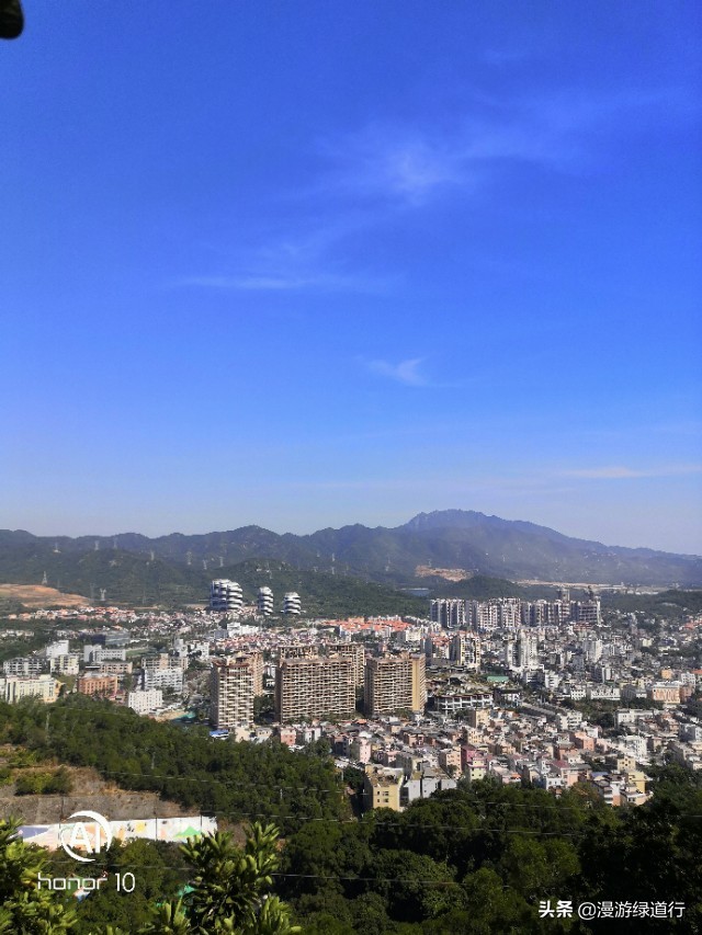 大鹏新区尽收眼底。观音山与远处的深圳第二高山七娘山相望。
