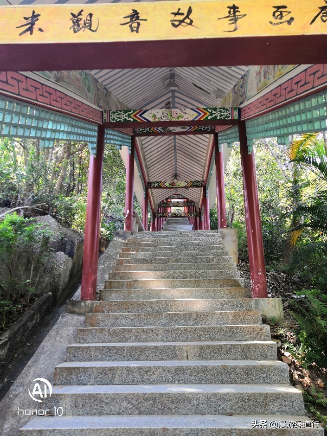 漂亮的登山道长廊上也有顶棚,可以休息避雨,长廊两边绘有观音故事。