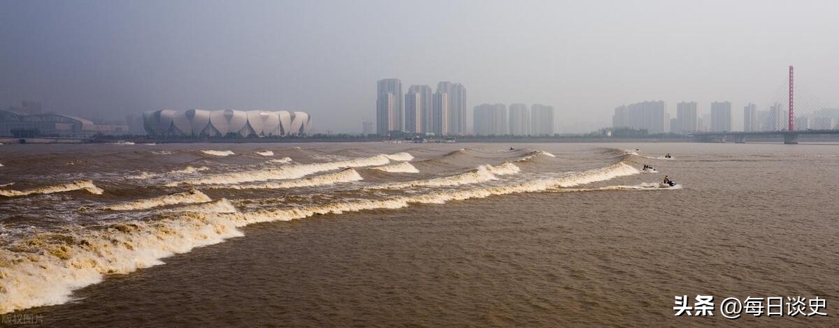 钱塘江位于浙江省,最终注入东海,每年都吸引许多游客前来观赏这一奇景。当潮水来临时,远处的白点会迅速变成银线,并伴随着雷鸣般的潮声,不久之后,潮水会翻滚而至,给人以排山倒海之势的震撼。