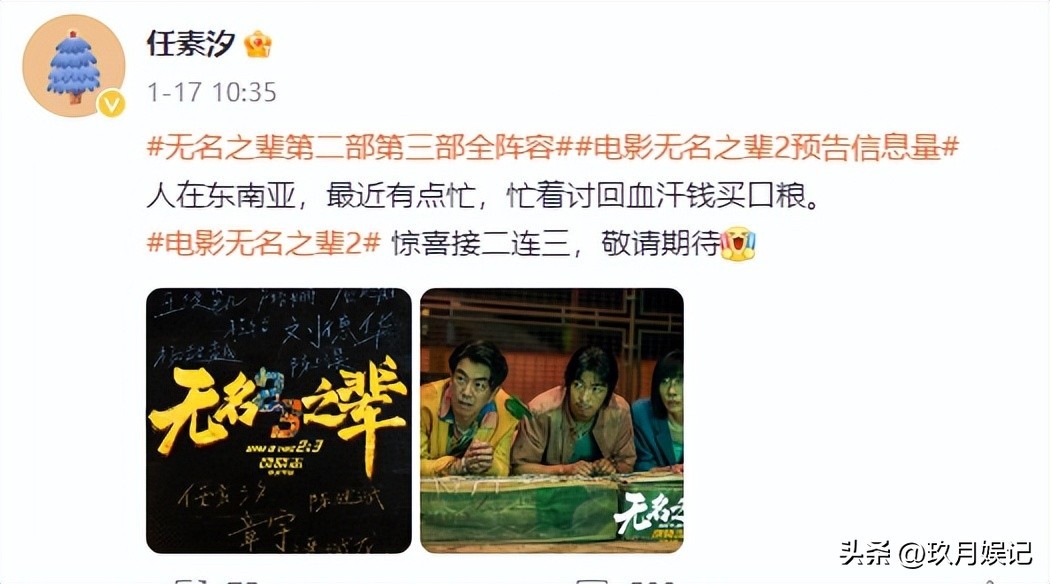 可以从她的社交平台上看到最近的她正在忙着拍她的新片《无名之辈》第二部和第三部,