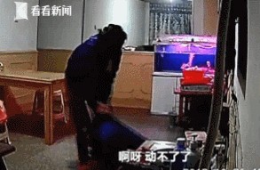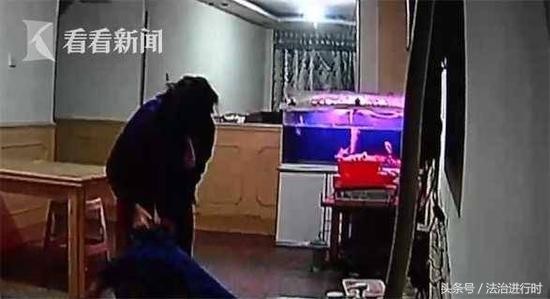 画面中可以看到,老人进入房间之前,还能正常行动,而进入房间几分钟后,就被李姐拖了出来!一直在地上躺了7分钟,李姐才再次出现。