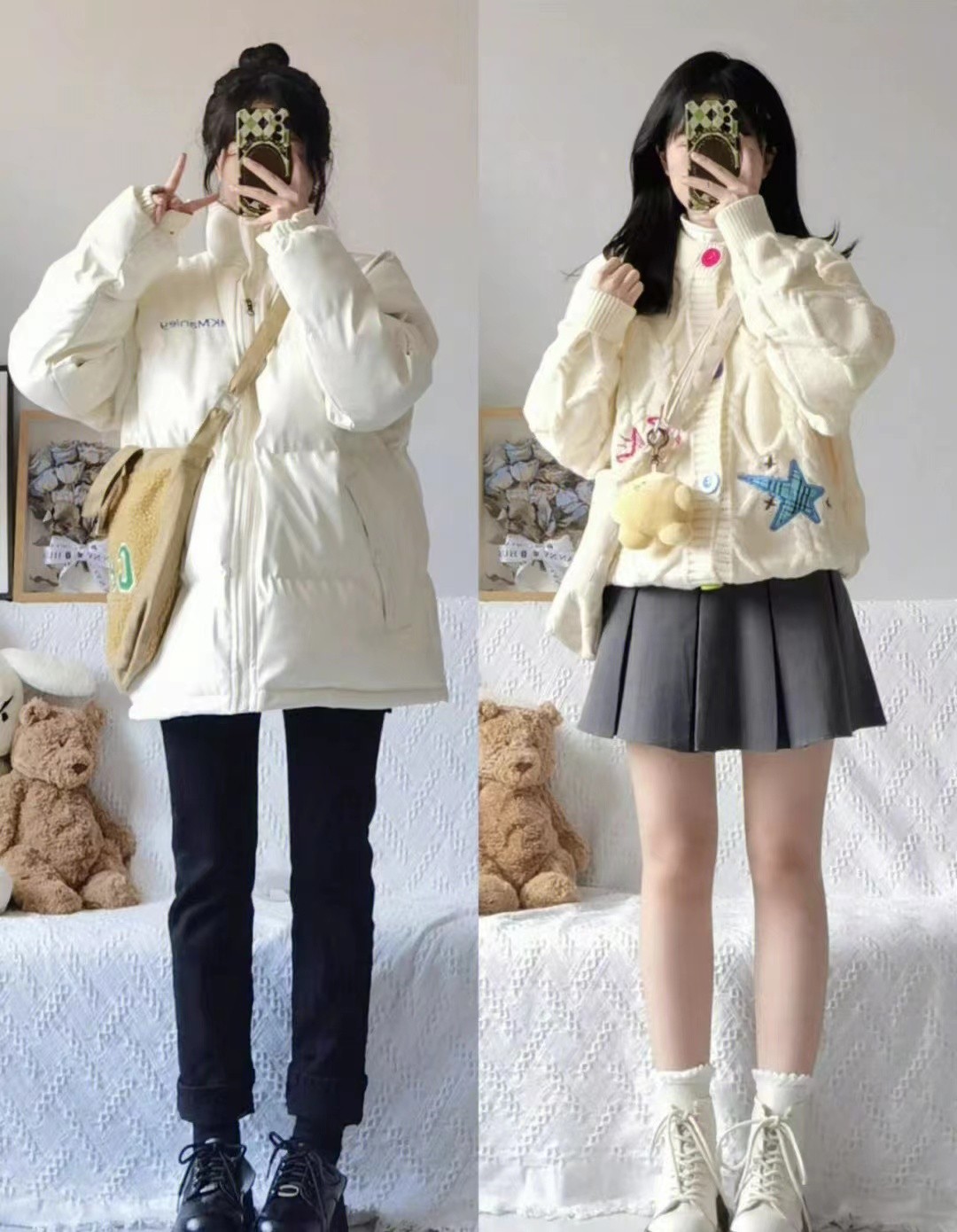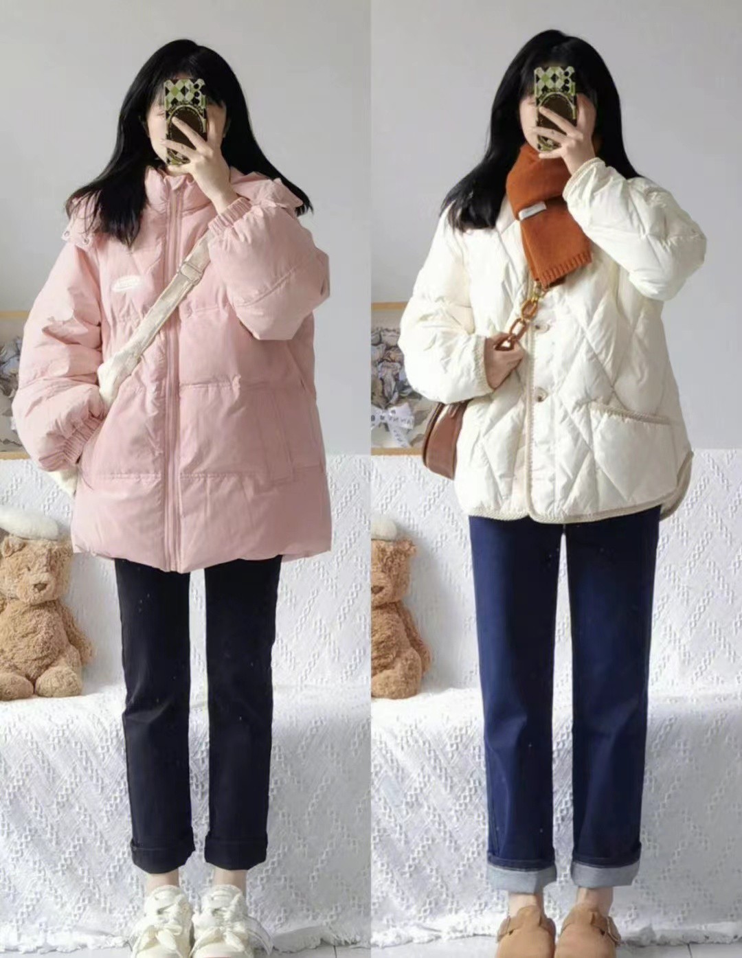 秋冬季节怎么能少得了黑白色搭配呢,宽松又保暖的白色棉服,穿上就是一整个温暖住了。