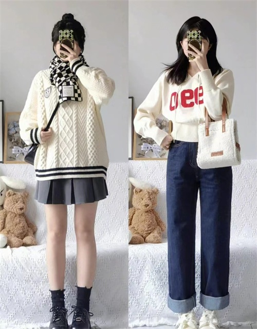 上衣可搭配一件米白色的针织衫,也穿出青春和活力,这样的搭配也是很有层次感。秋冬季节这样穿,轻松穿出学院感。