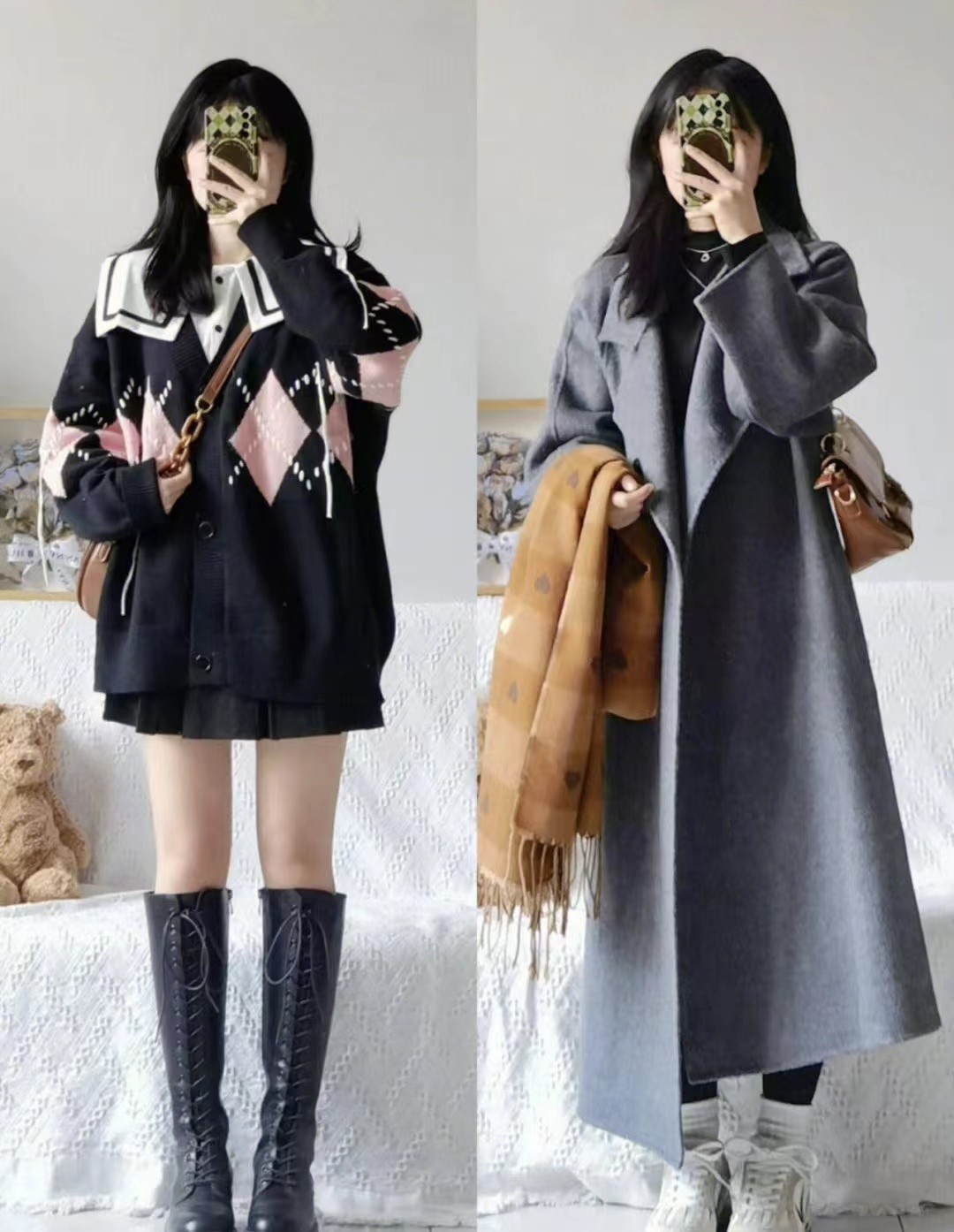 小个子女生这样穿也是很小巧的,可可爱爱,秋冬季节这样穿真的很nice!