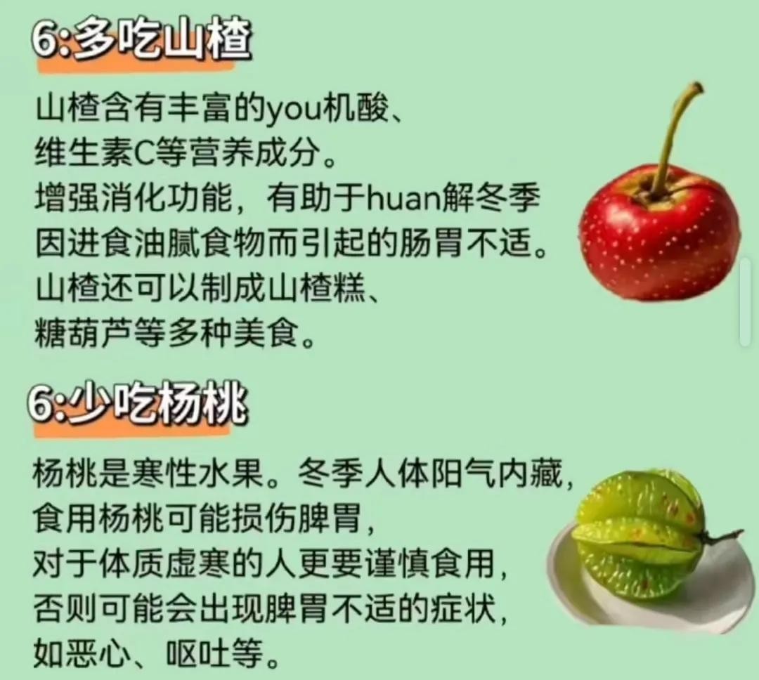 冬季吃水果,就像是一场与自然的对话。我们学会了倾听身体的声音,学会了在寒冷中寻找温暖的力量。橙子、桂圆、石榴等温性水果如同冬日的暖阳,温暖着我们的身心;而西瓜、草莓等寒性水果则如同冬日的寒风,需要我们谨慎对待。在这个季节里,让我们选择对的水果,让身体得到最好的滋养。愿每个人都能在冬季里找到属于自己的那份甜蜜和温暖!