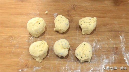 3.把面剂子揉成圆球,用食指压一个窝,边转动边往里面压,再放在案板上把表面搓平整,窝窝头的生坯就做好了。