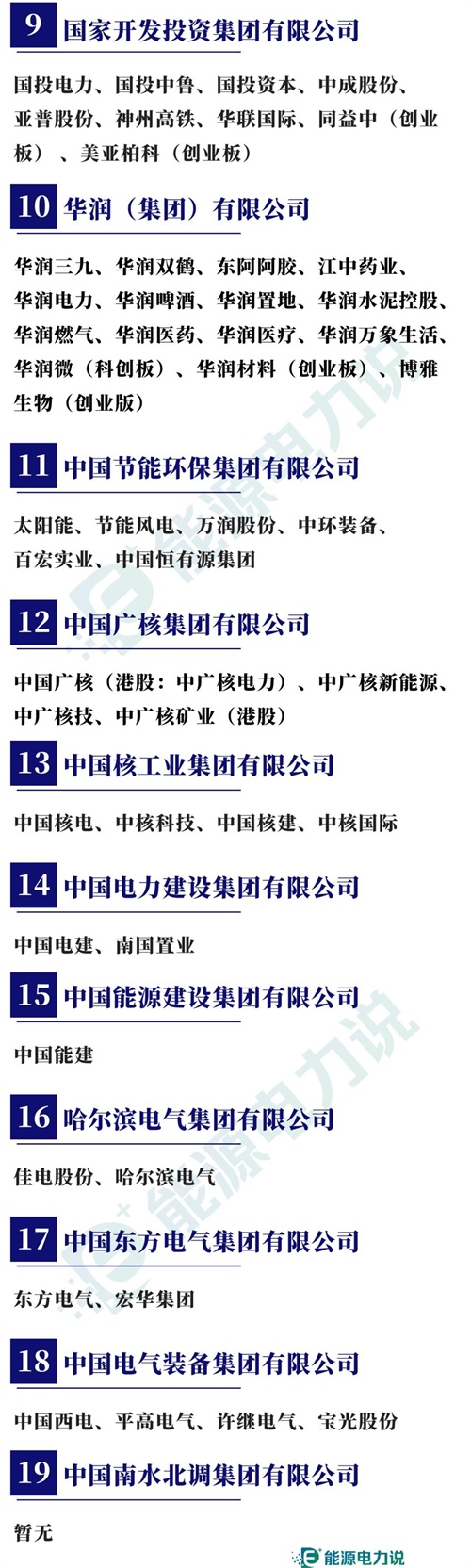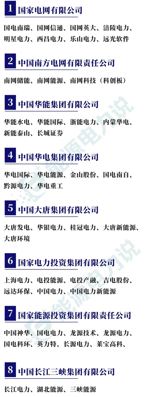 据2023年央企最新名录,截止目前共有98家央企,旗下合计454家上市公司;其中能源电力领域央企19家,下属上市企业96家。