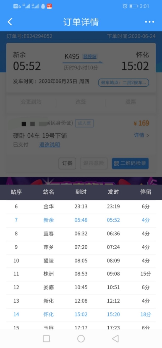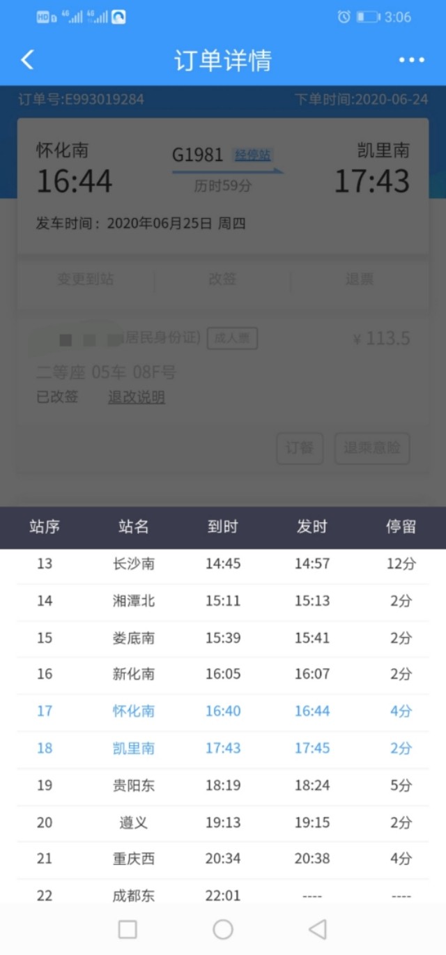 今天从新余坐火车到凯里,本着经济和效率当天晚上七点前能到凯里,就安排途中在怀化转高铁,车票都是在12306上订购的。新余到怀化的K945车晚点四小时,原本三点零五分到的车要延迟到七点左右到,导致我在怀化转高铁时间来不及,有三种办法可以换车票到凯里,第一在12306上直接退高铁票(扣百分之二十手续费)在续买K945怀化到凯里的票,第二种在怀化下车后找售票窗口退票后重新买到凯里的票,第三种把怀化到凯里的高铁票直接在手机上改签晚点的高铁。车辆晚点了,其实改不改高铁意义不大了,所以我倾向于第一种方案。但是这样就会损失百分之二十手续费。所以在这里呼吁一下,因为火车晚点造成赶不上下一趟火车,乘客需要继续延长晚点班车的里程,火车上能不能直接全额退还乘客下一趟火车票款?