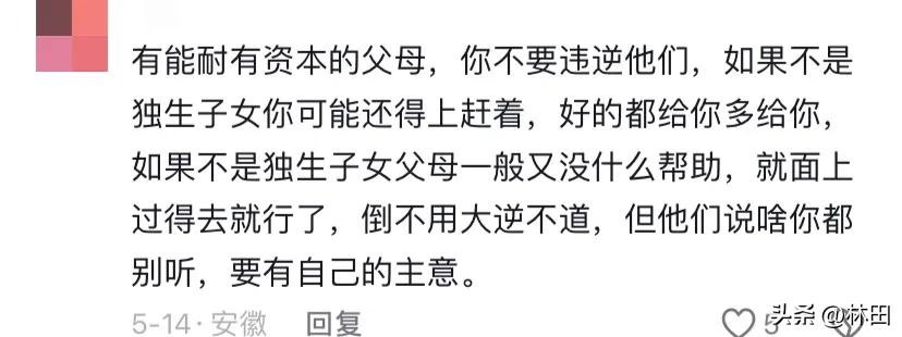 不管上一代如何,父辈百年以后能靠的只有自己,父辈的建议只是指引,要永远把选择权留在自己手里。