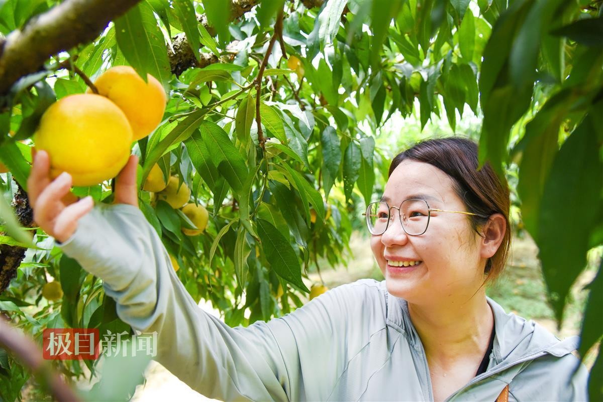 游客在江陵县三湖农场的黄桃基地采摘(极目新闻记者 黄志刚 摄)