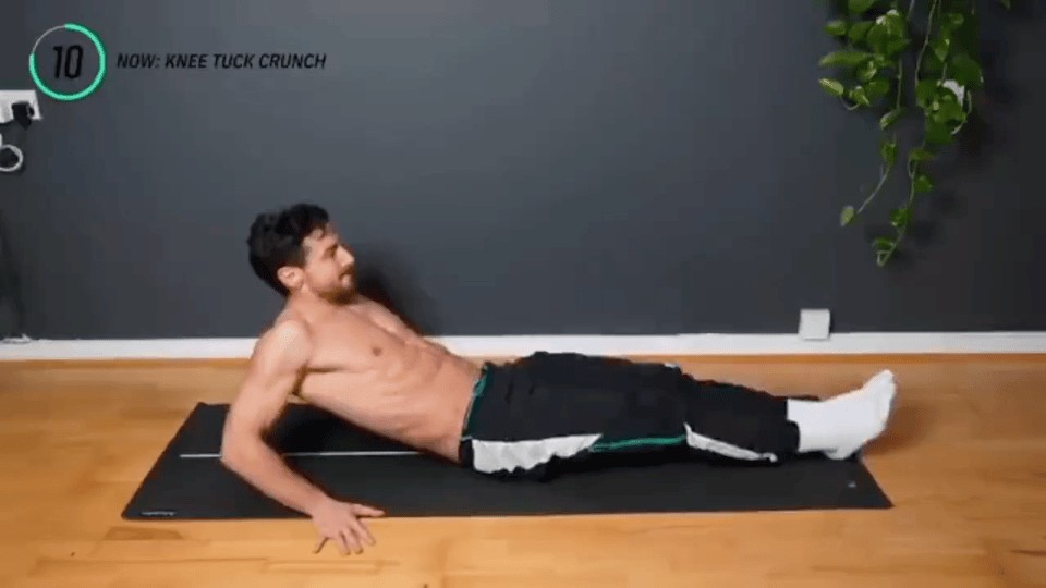 "Knee tuck crunch" 是一种针对腹部的力量训练动作,可以有效地锻炼腹部肌肉,提高核心稳定性,以及帮助消除腹部脂肪。这个动作对于加强腹部肌肉和改善腹部线条效果非常有效。根据个人的能力和训练目标,可以适当调整动作的难度和训练强度。对于初学者,建议在专业教练的指导下进行练习,以确保正确的动作技巧和安全性。
