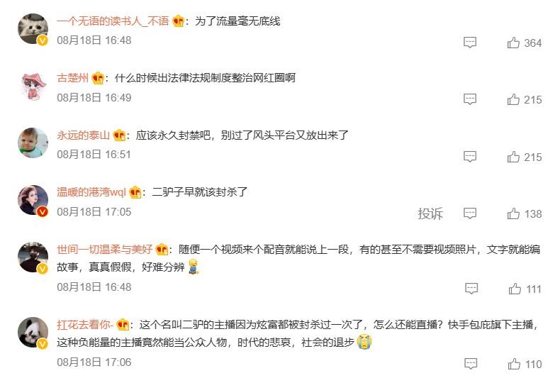 现如今,即便是二驴已经被永久封禁,但还有网友提出了严查他资产的想法。