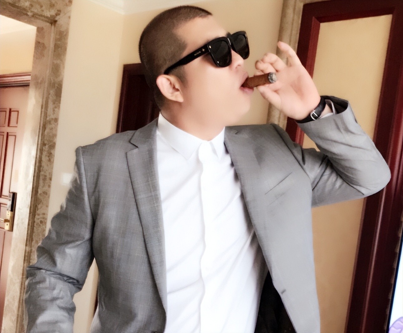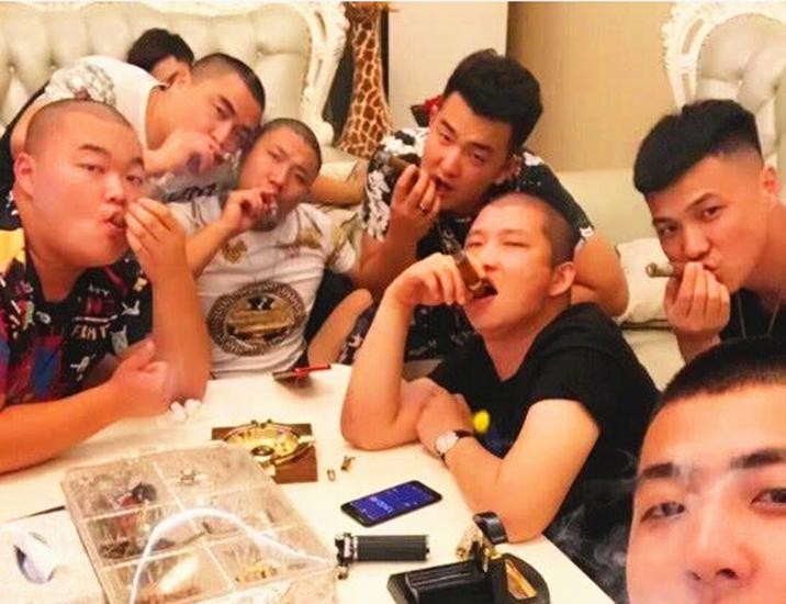 果不其然,没过多久,就有一位身穿黑衬衫,带着大金链子的极具“社会气息”的大哥出现了,后面还跟着一群“小弟”!