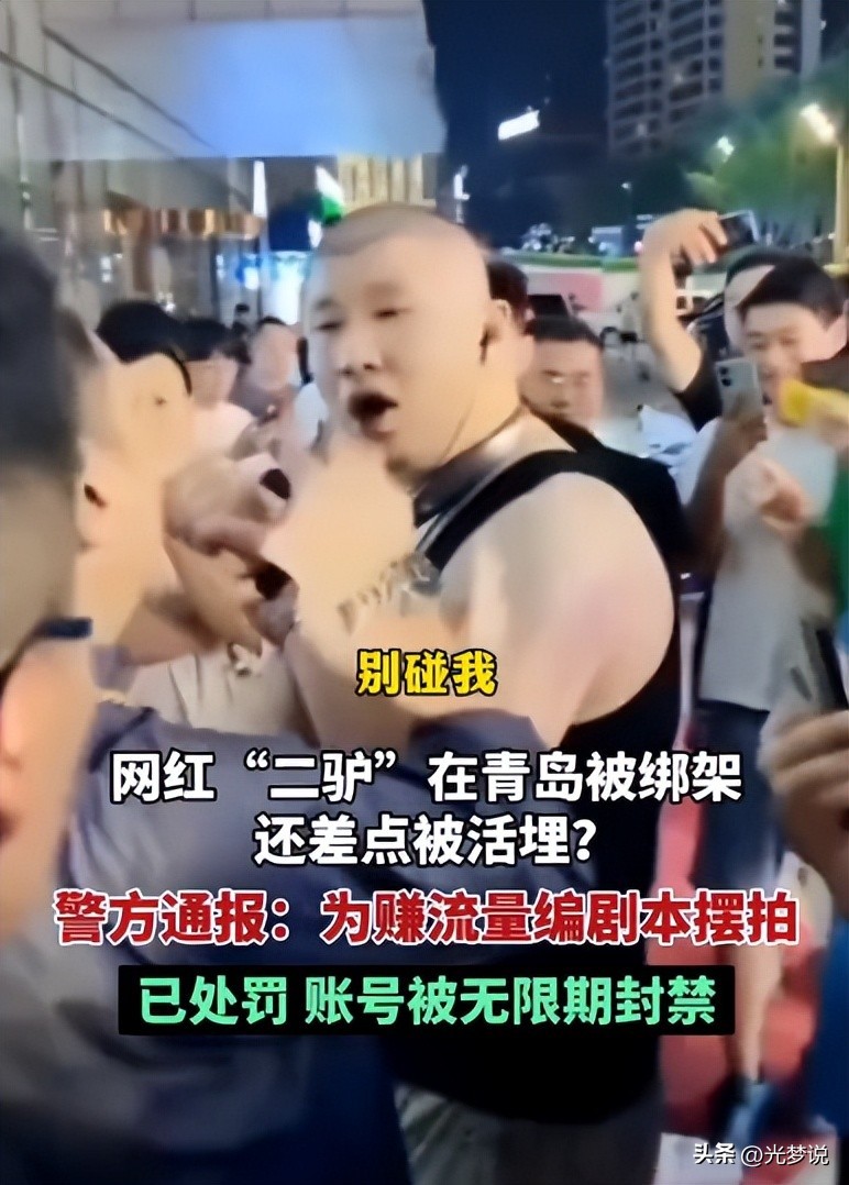 近日,千万网红主播二驴在青岛直播时,被警方通报,并且被平台无限期封禁。