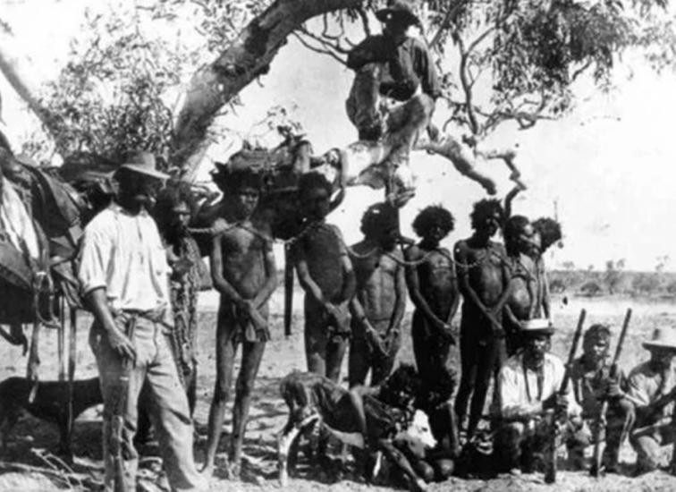 丧心病狂的殖民者为了取乐,竟然还将塔斯马尼亚土著排成队,并将他们当成活靶子用来练习打靶。