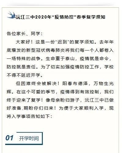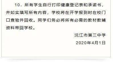 沅江三中2020春季开学须知