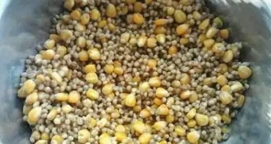 2、麦麸50%,豆饼30%(炒熟、碾碎,冲入开水,待半干后掺少许酒),熟玉米面饼20%,混合均匀,加适量水搅拌,能捏成团为宜。
