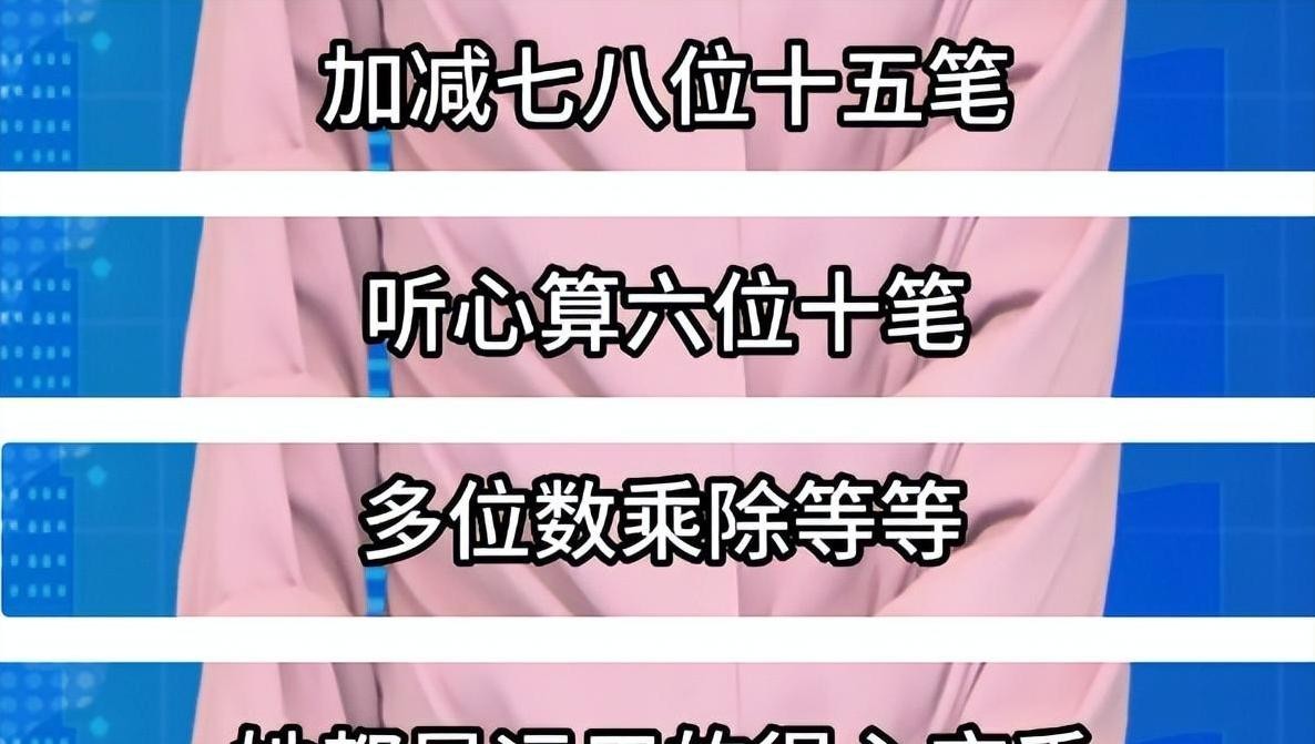 17年前,内蒙古一位只有6岁的女孩潘晶就展示出了令人惊叹的珠心算才华。她参加了国家级的珠心算大赛,并获得了晋级的资格。此后,她通过了部队的珠心算选拔,成为了最年轻的军官。