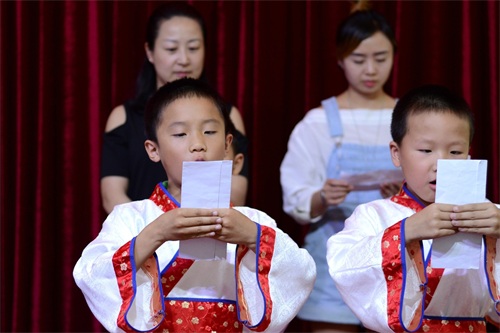 活动在小主持人朱希彤、周芸好、周筱艺、何政喆铿锵有力的主持下,在悠扬的配乐声中拉开帷幕。活动中,亲子诵读《让我们一起成长》,让大家见证了孩子们的成长历程;《爱与梦想》,将爱和梦想融合在一起,让大家体会了不一样的温暖;《母爱如水 父爱如山》,让大家沉浸在温柔如水的母爱和沉稳如山的父爱中。亲子诵读《我骄傲 我是中国人》,回顾了五千年的璀璨的历史文化,展示了作为中国人努力创造新的历史的决心,深情地朗诵,也着实让大家为身为一名中国人而感到自豪;《如果我有一双翅膀》,表现出了孩子们的世界充满奇思妙想,把同学们带进了无限的遐想;《感恩的心》,让大家懂得了感恩是一种乐观的心态,是一种礼貌的品质,心怀感恩,生活必定有不一样的精彩,教会孩子们从小常怀一颗感恩的心;一曲《周南·关雎》,带我们踏进了缓缓流淌的历史的长河之中,向我们述说那纯真的爱情故事。