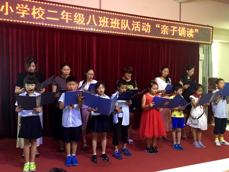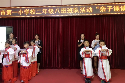 据悉,活动在市一小本部教学楼5楼的多功能室举行,二年级八班全体教师、同学及部分家长参加了该活动。活动以“亲子诵读”的方式展开,全班共分为7个组,每组由8名孩子和4名以上家长组成。