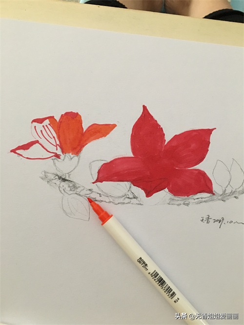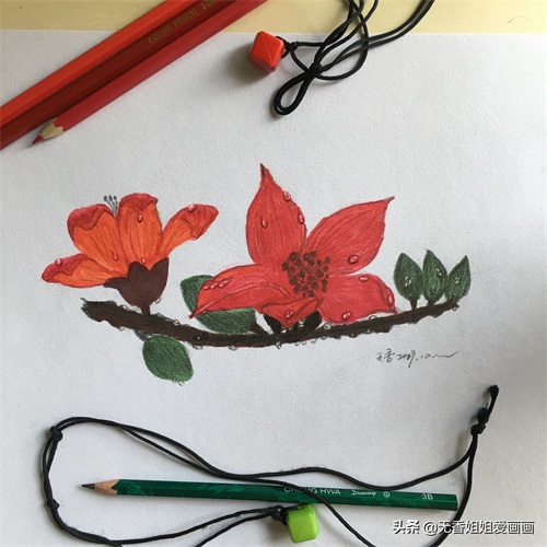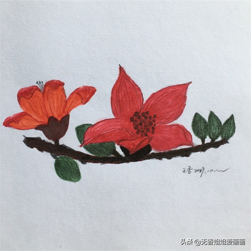 用马克笔和彩铅结合绘画的《木棉花》,简直是太吸引眼球了