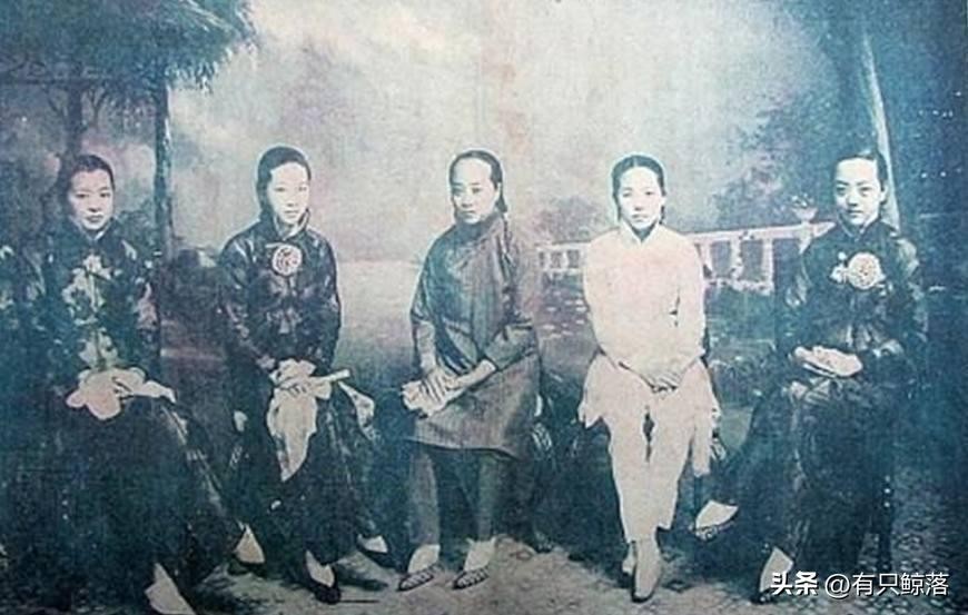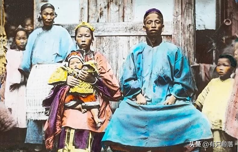 晚清老照片,船妓在整理床铺,裹小脚女子坐男子腿上拍照