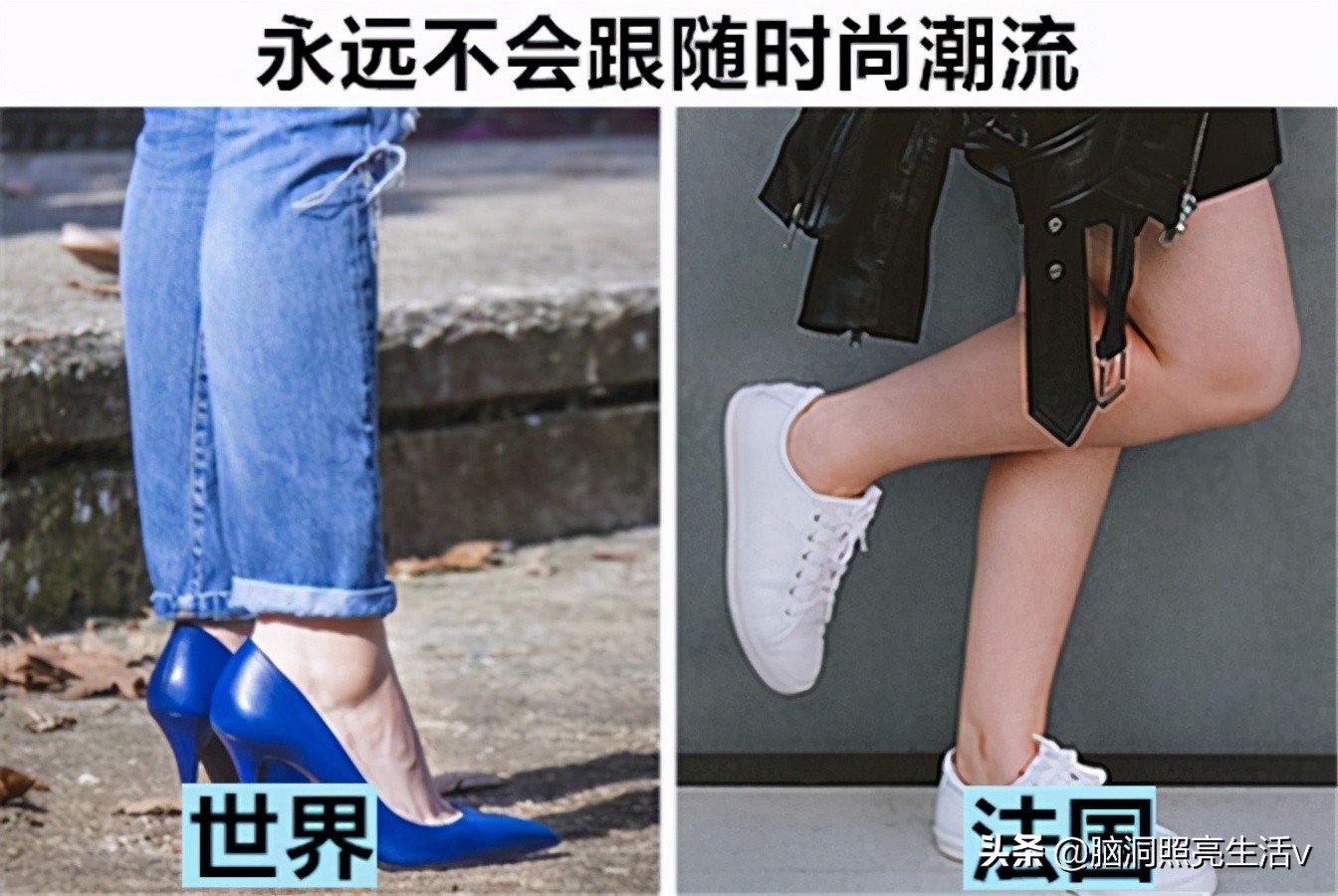 和其他国家的女性不同,舒适和健康是法国现代女性最看重的,所以喜欢穿着超高高跟鞋的人,真的是非常少,在巴黎有不少的年轻的女性,无论是逛街还是工作,都更加愿意穿着舒适轻便的运动鞋,所以可以这么说,对于法国女性来讲,永远不会跟随时尚潮流,也认为这种跟风是完全没有必要的“愚蠢”行为。