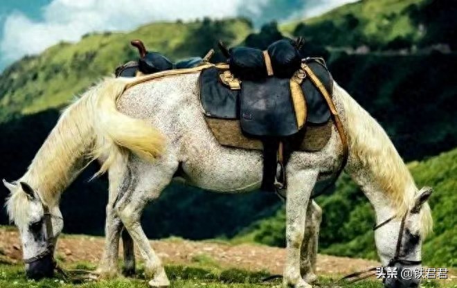 1.乍一看还以为是有两个头的马在吃草呢,原来是两只马同时低下了头。