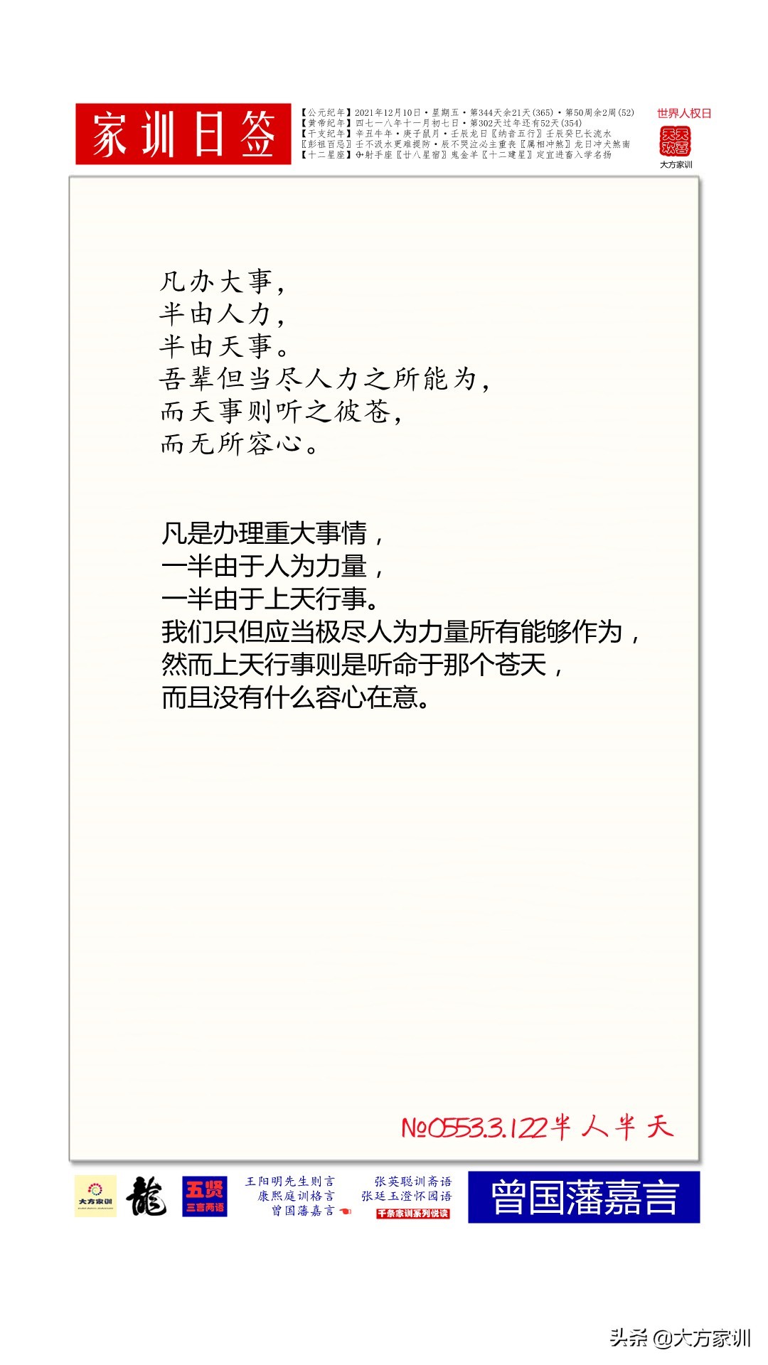半人半天:办理大事,一半由人力,一半由天命,只能尽人事听天命