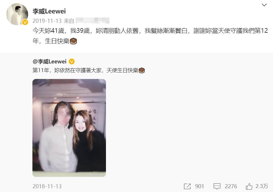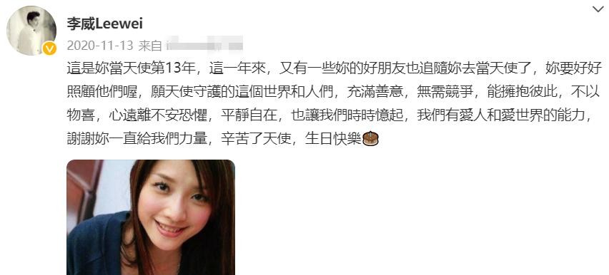 许玮伦香消玉殒后,李威感到后悔不已,连续十几年女方的冥诞,他都会发文悼念。