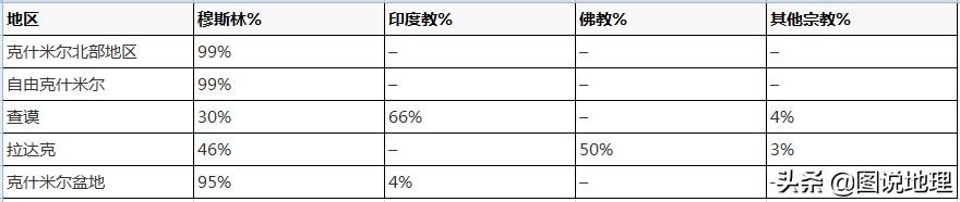 克什米尔地处南亚次大陆西北部,处于中国藏文化、南亚印度文明、中亚游牧文明和中东阿拉伯文明的交汇地带,这注定克什米尔将受到多个文化的交叉影响,主要表现在其错综复杂的宗教上。在这个并不是广阔的区域,存在着伊斯兰教、印度教、佛教及锡克教等,在漫长的历史中,各个宗教势力随着不同宗教信仰当政者交替此消彼长。常常在一个宗教势力占主导地位时,都会对其他宗教进行打压和迫害。