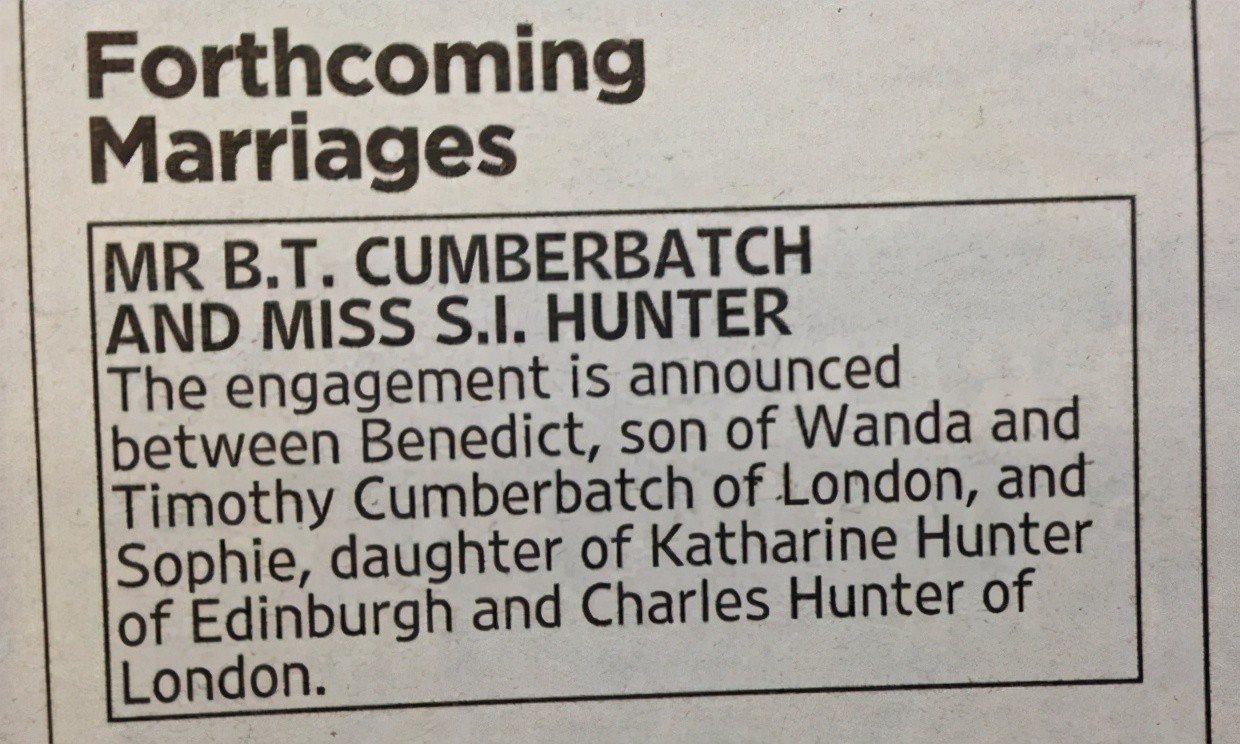 11月,卷福的爸妈在报纸上刊登了儿子儿媳订婚的消息,一时间引起了粉丝们的热议。人们对苏菲无比好奇,但都在了解了她之后,给予了满满的祝福。