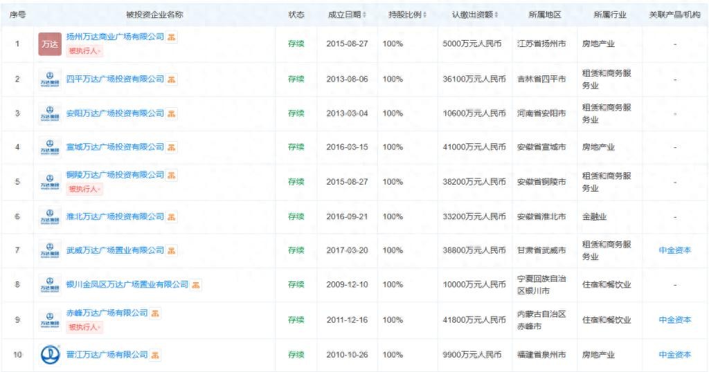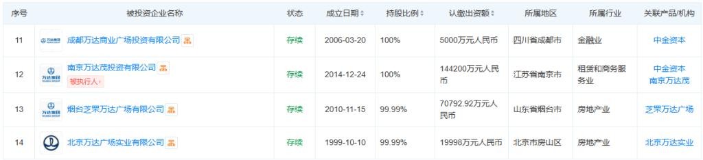 可查询的资料显示,由新华人寿保险股份有限公司和中金资本运营有限公司持有的坤华(天津)股权投资合伙企业(有限合伙)连续收购了万达在宣城、铜陵、安阳、四平和扬州的5座万达广场。