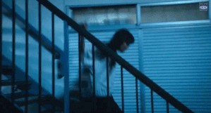 被言语刺激的宫本,从地上爬起来继续打,靠着不要命的精神,两人缠斗到了楼梯之外。