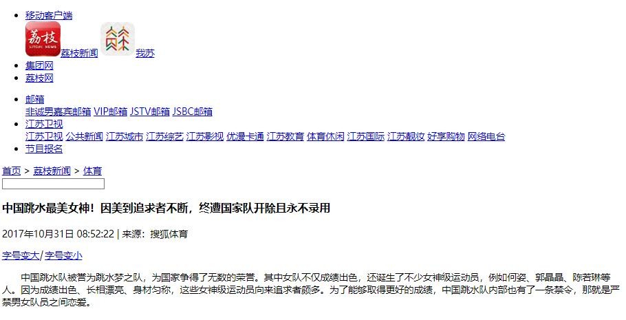 荔枝网2017年10月31日《中国跳水最美女神!因美到追求者不断,终遭国家队开除且永不录用》