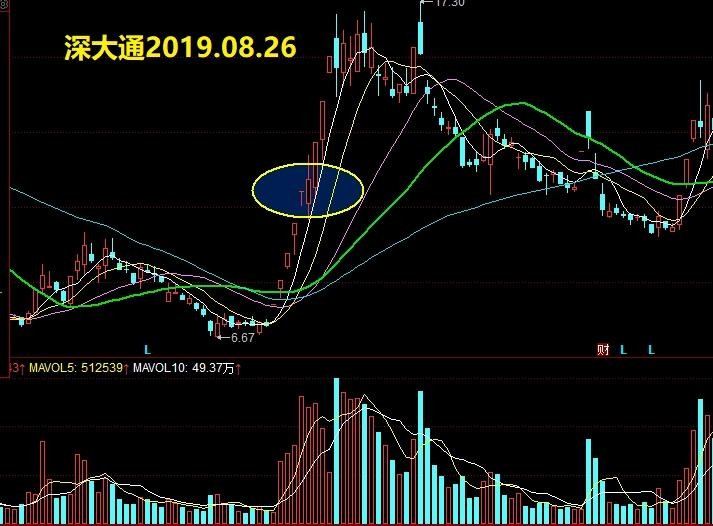 深大通,2019年8月26日完成苏秦背剑组合。此后该股从11块6毛八一路涨到16块8毛8,短线涨幅近30%,而花的时间只有短短4天。足见这一组合的威力巨大。
