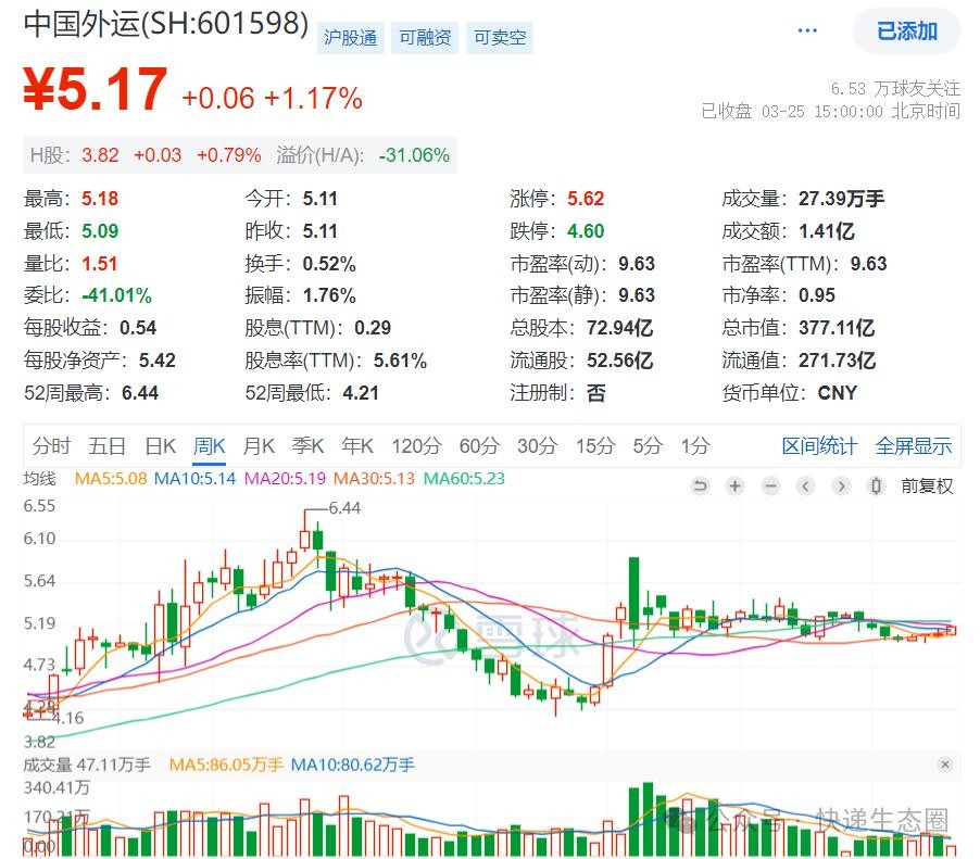 综合物流服务商中国外运:2024年营收1056亿,净利39.2亿,下降7%