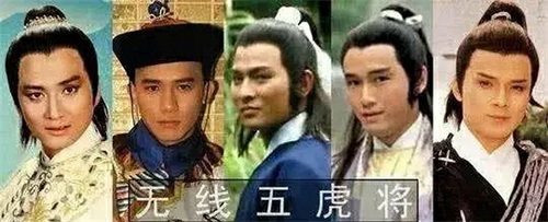 这五位当年在无线各自发展,黄日华和苗侨伟合作的射雕,刘德华梁朝伟合作的鹿鼎记,刘德华还和汤镇业合演了《宝芝林》,黄日华、苗侨伟和汤镇业合演了《决战玄武门》,苗侨伟和汤镇业合演了《五虎将》。