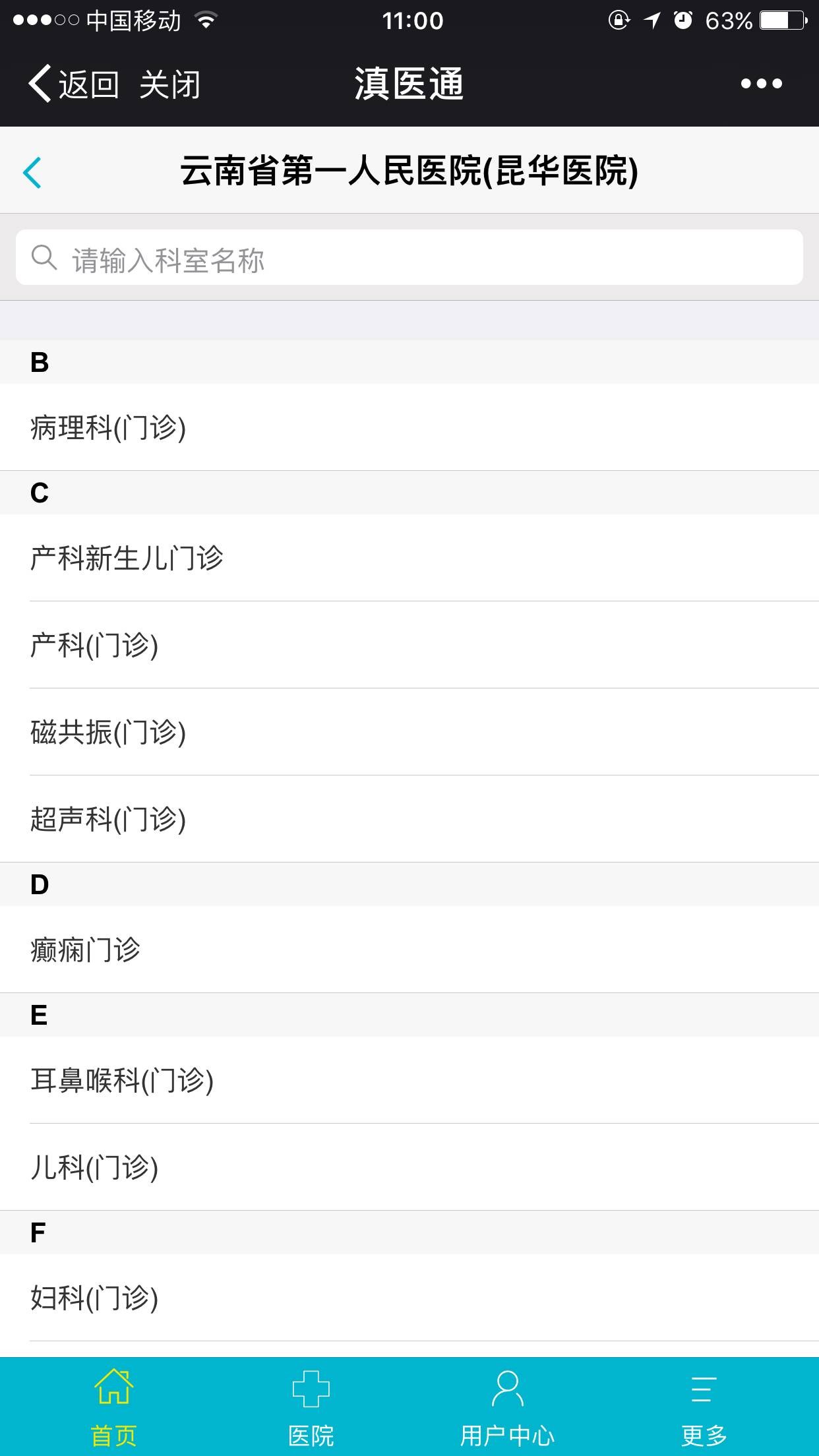 后点击预约挂号,进入了医院列表,在医院列表中可选择自己需要前往就医的医院。