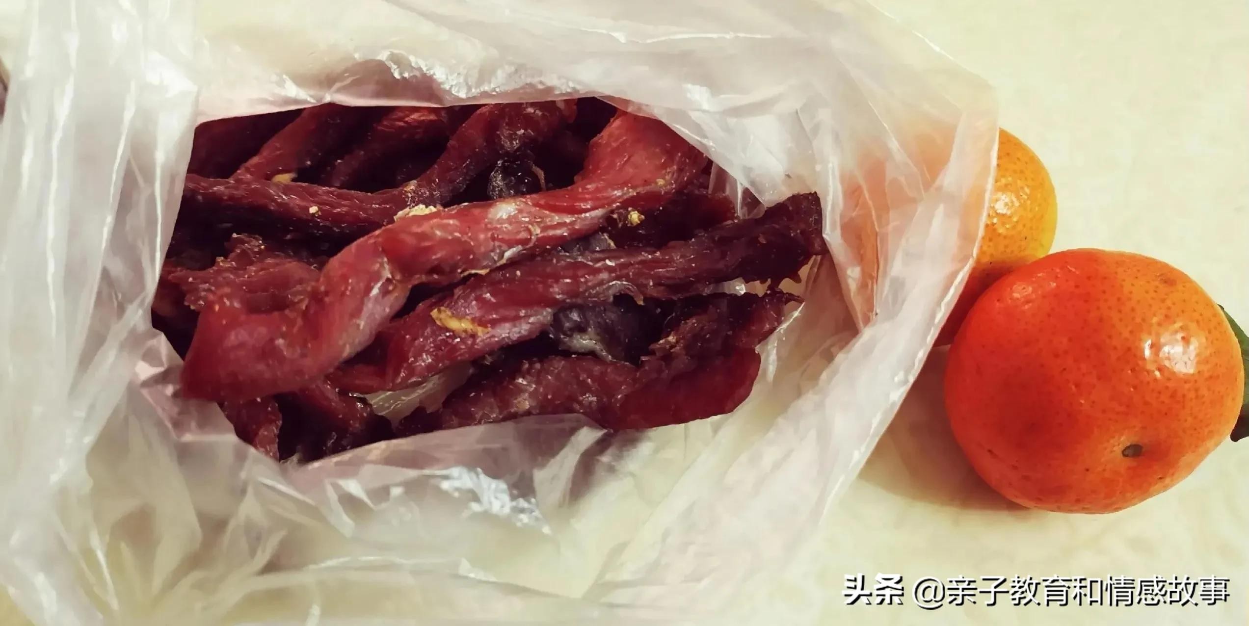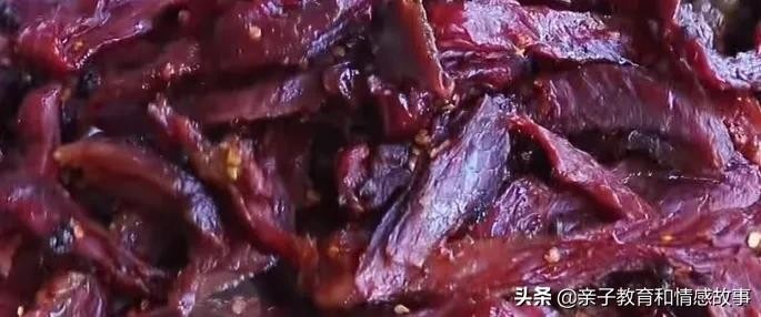 自己做的肉干没有添加剂,调料放得也少,孩子多吃一点也没关系。