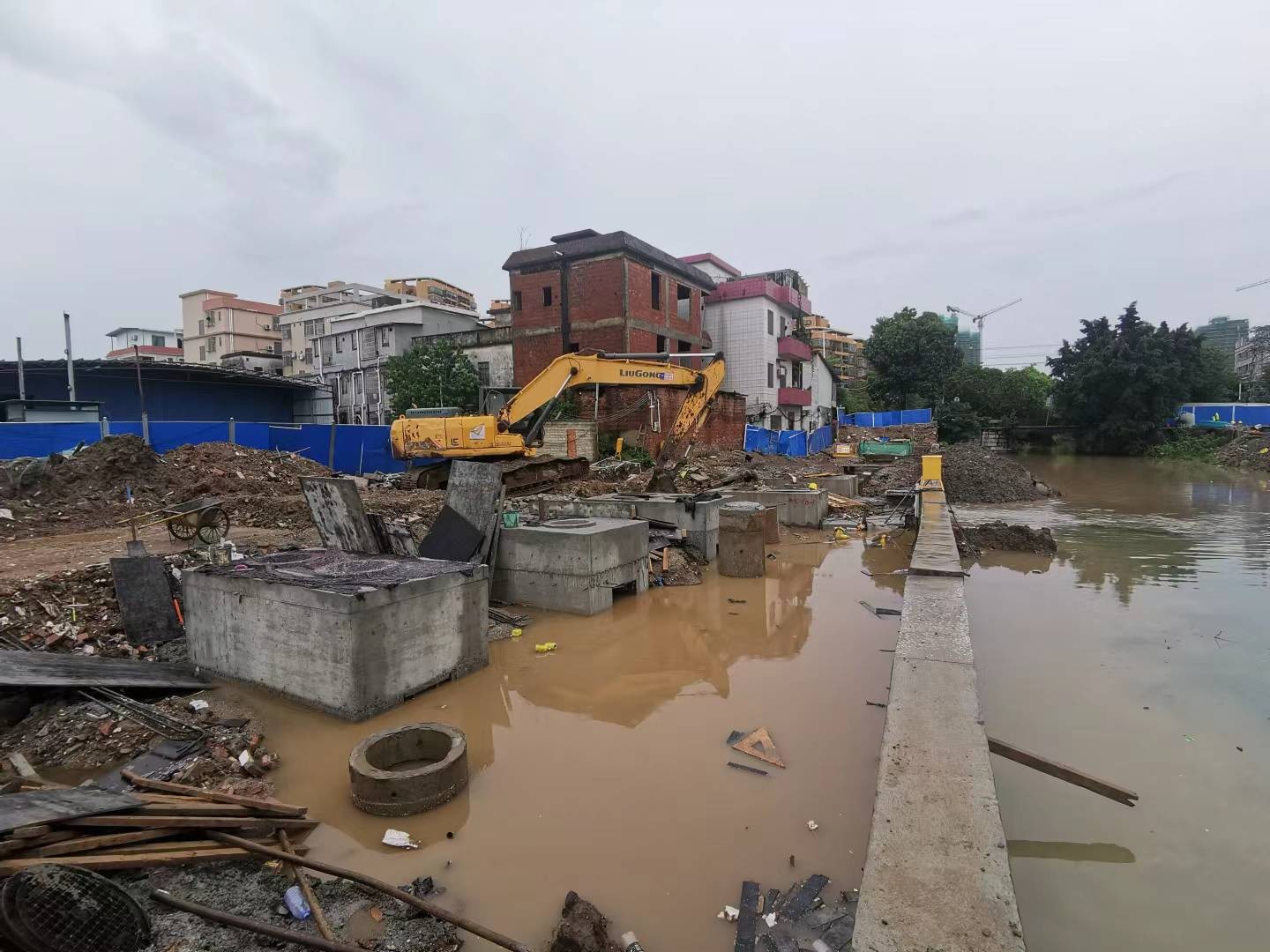 梅雨季期间连续降雨,使得施工现场泥泞湿滑,增加了施工难度和安全风险。尤其是基坑工程,需提前完善应急预案、专项施工方案,要合理安排施工工序,采取了有效的防雨、防滑和排水措施,落实人防、物防、技防等各项措施,确保工程安全。