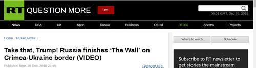 报道称,还有一位自称亲俄的美国网友建议,应该把修建美墨边境墙的合同交给俄罗斯。这位网友说,如果把乌克兰-克里米亚边境屏障的造价推算到美墨边境墙上,建墙只需大约1.5亿美元。