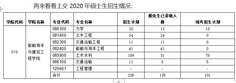再来看看上交2020年硕士生招生情况: