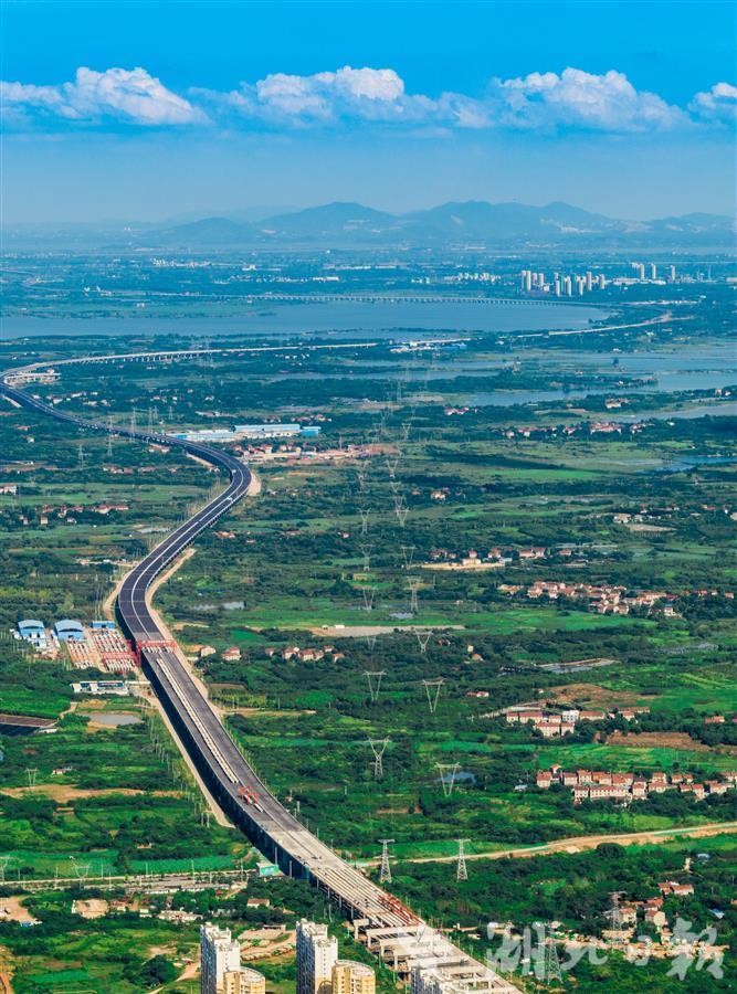 根据规划,武阳高速武汉至鄂州段通车后,从武汉光谷到鄂州市区仅需20分钟;全线建成投用后,预计武汉至南昌的通行时间最少可节约1小时。目前,武阳高速公路项目全线已完成除征拆影响外工程主体施工,正在进行桥梁、桥面系统附属结构安装等配套工程施工阶段,预计今年底前建成,具备通车条件。(湖北日报全媒记者 柯皓 实习生 刘鑫淼 摄)