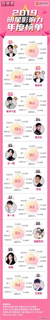 2019明星影响力榜单:肖战、蔡徐坤、易烊千玺斩获三甲