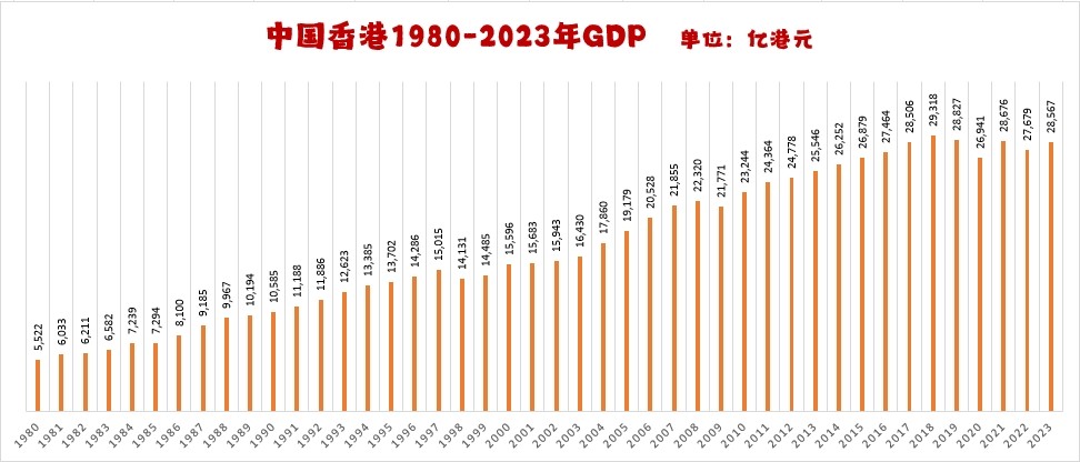 香港2023年GDP约28566.5亿港元,增速3.2%,真沦落到二线城市了?