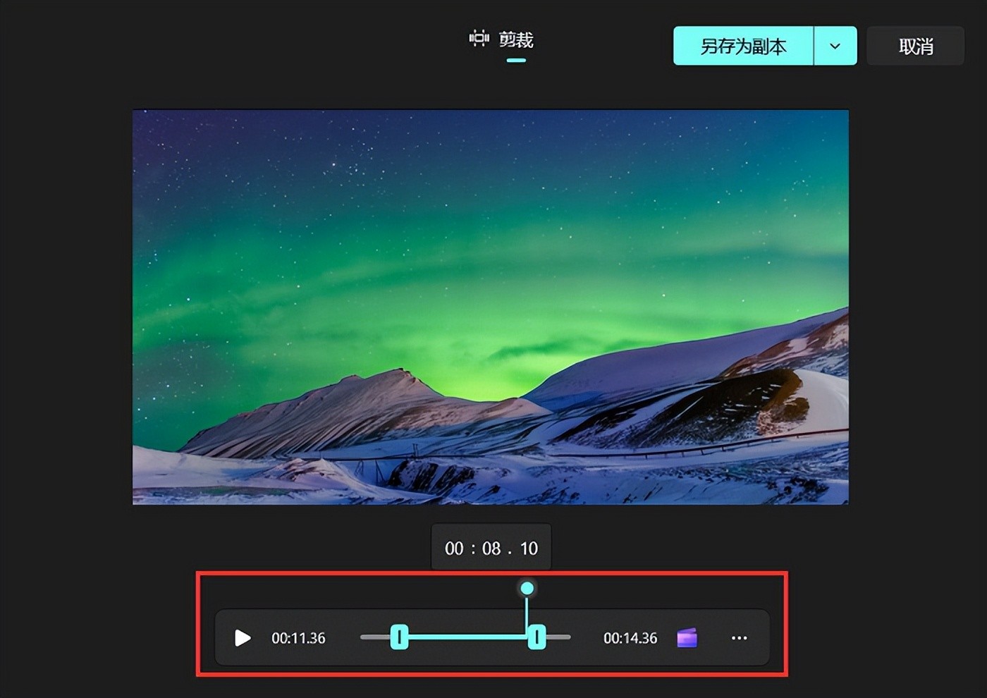 第3步:在这里我们可以对视频进行截取,拖动视频进度条,选择需要保存的部分,然后点击右上角的“另存为副本”,将其保存到指定的计算机位置。